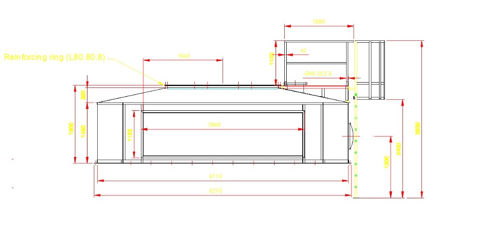 Working volume: 57 m³ Gross volume ca 65 m³
