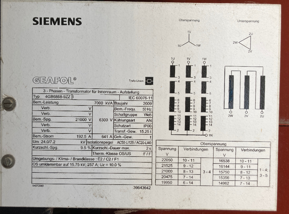 Transformator 20kV Siemens