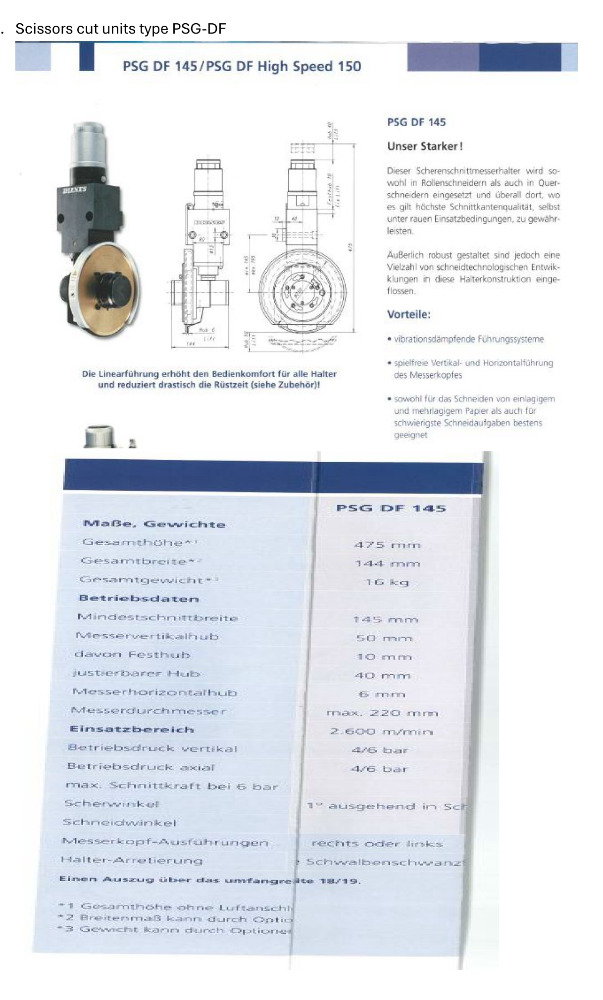 - 1 piece complete scissors cut unit PSG DF 145 (left hand)
