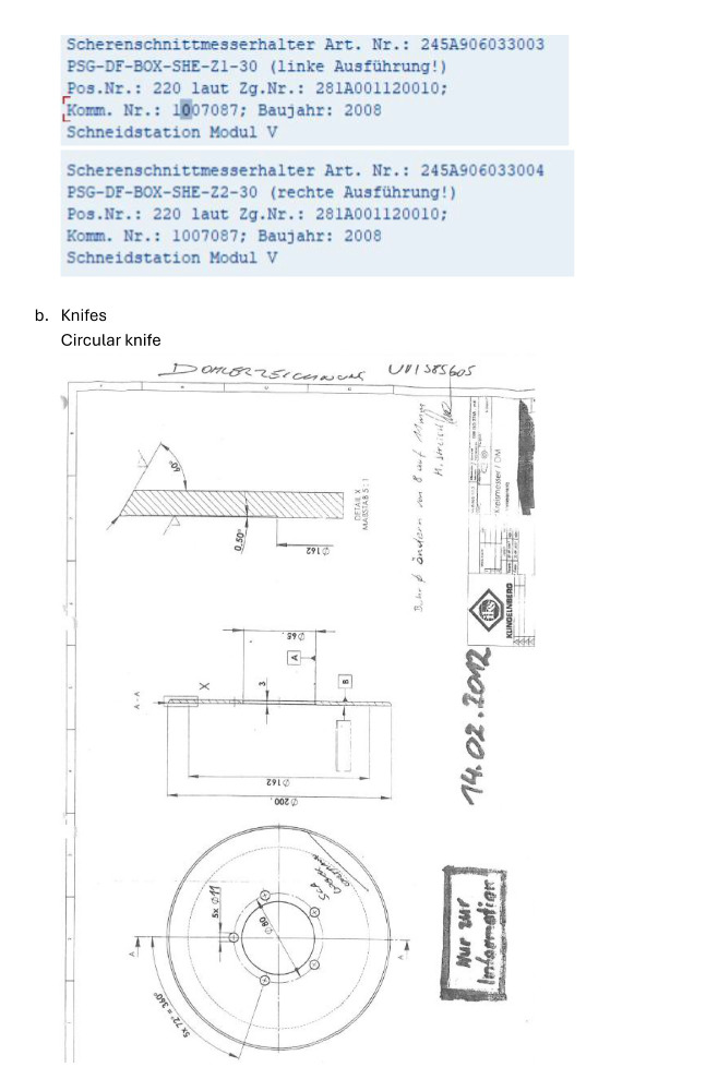 - Knives: 40 circular knives, 11 driven knives